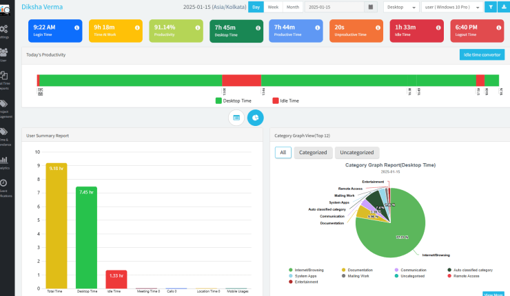 DeskTrack creates thorough reports that give a general picture of productivity levels, including time spent on various tasks, program use, and websites visited. These reports can be used to plan projects, allocate resources, and evaluate performance.